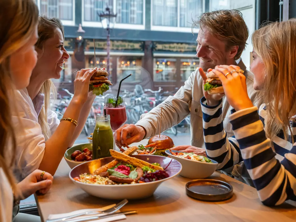 Hans im Glück ist ein einzigartiges Restaurant, in dem du eine Pause machen und frische, handgemachte Burger, Salate/Bowls sowie leckere Cocktails genießen kannst. Auf unserer Karte findest du eine große Auswahl an Rind-, Hähnchen-, vegetarischen und veganen Burgern, serviert mit knusprigen Pommes und hausgemachten Soßen. Egal, ob du schnell zu Mittag essen, entspannt zu Abend essen oder mit Freunden einen Drink nehmen willst – bei uns ist für jeden etwas dabei. Dank der zentralen Lage am Rembrandtplein ist Hans im Glück perfekt für Touristen und Einheimische. Komm vorbei und schmecke das Glück – das lebhafte Rembrandtplein ist einer der bekanntesten Plätze Amsterdams, voller Cafés, Theater und Nachtleben. Mitten drin findest du uns.