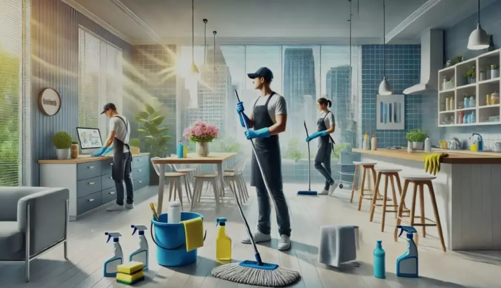 Inbegriffen: Woechentliche, zweiwoechentliche Reinigung, Feuchtes Wischen aller Oberflaechen, Staubsaugen und Bodenpflege Kuechen und Badreinigung