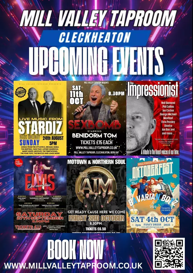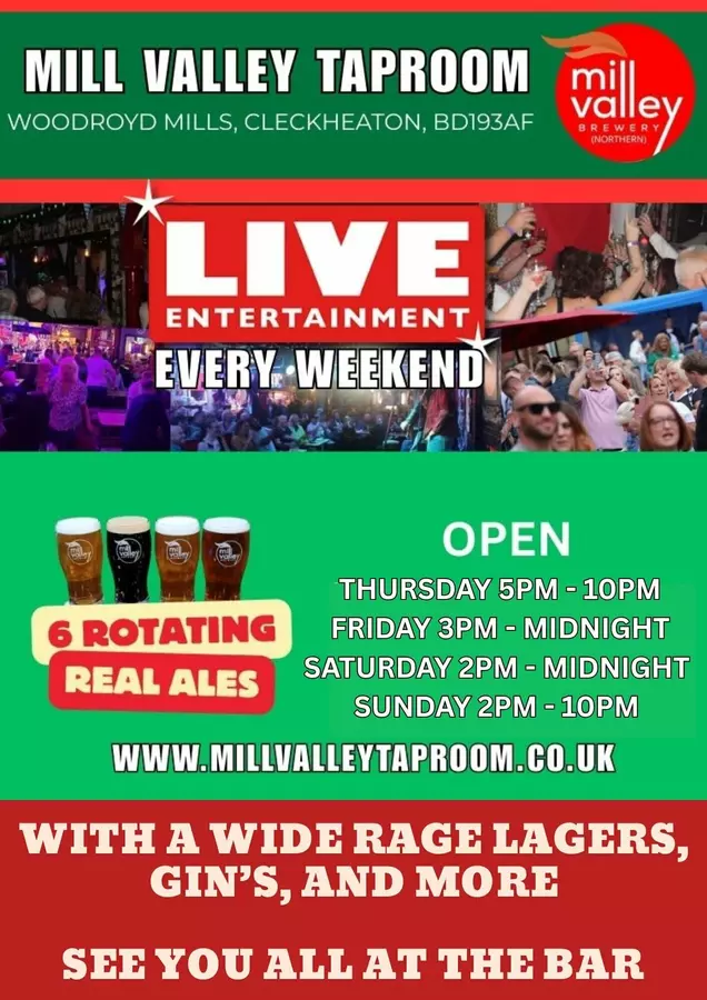 FANTASTIC LIVE MUSIC VENUE, COMEDY CLUB, TRIBUTE BANDS, Friendliest Bar in Cleckheaton, serving quality CASK ALES from our own Independent Brewery since 2016. We also serve delicious food from the MVB Kitchen alongside other selected fine wines, gins, and continental lagers. In addition to the fine food and drink, we host great live entertainment including live music every Saturday Night, Monthly Comedy Nights &Sunday Night Quiz. Finally, we sell a wide range of Mill Valley Brewery vegan friendly craft beers, ales, and stouts in cans to take away.