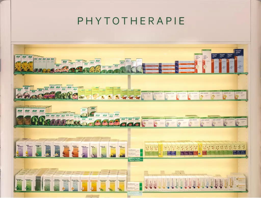 En plus de l'offre classique de médicaments sur ordonnance, nous vous proposons un large choix de remèdes issus des médecines douces, notamment aromathérapie*, hydrolathérapie*, phytothérapie*, homéopathie, spagyrie*, fleurs de Bach*, sels de Schüssler, micronutrition, oligothérapie, gemmothérapie (* = possibilité de préparations personnalisées issues de notre laboratoire maison).