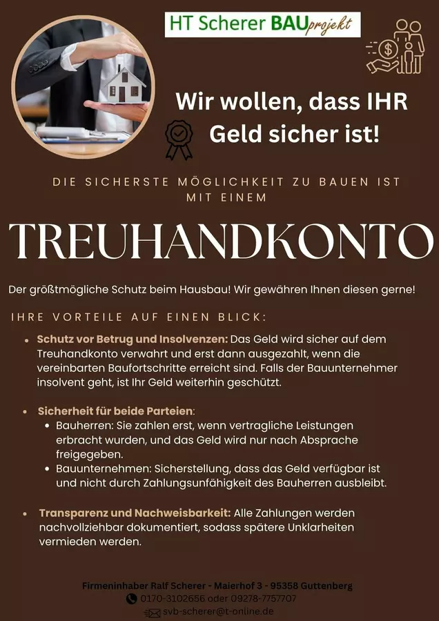 HT Scherer BAUprojekt ist Ihr verlässlicher Partner für umfassende Baudienstleistungen. Unser erfahrenes Team bietet erstklassige Lösungen im Hochbau, Tiefbau und der Bauplanung. Egal ob Tinyhouse, Passivhaus, Holzhaus, Vollholzhaus, Holständerbauweise, oder Massivbau - wir lassen uns auf Ihre Wünsche ein! Von der Projektentwicklung über das Bauprojektmanagement bis zur Bauleitung begleiten wir Sie in jeder Phase Ihres Bauvorhabens. Vertrauen Sie auf unsere Expertise, um Ihre Visionen in die Realität umzusetzen.