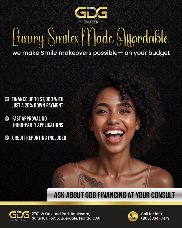 At GDG Smiles, we specialize in stunning smile transformations with same-day composite veneers and long-lasting ceramic designs. Located in Fort Lauderdale, we combine artistry, affordability, and in-house technology to make your dream smile a reality. Financing available. Walk in with a question, leave with a smile.