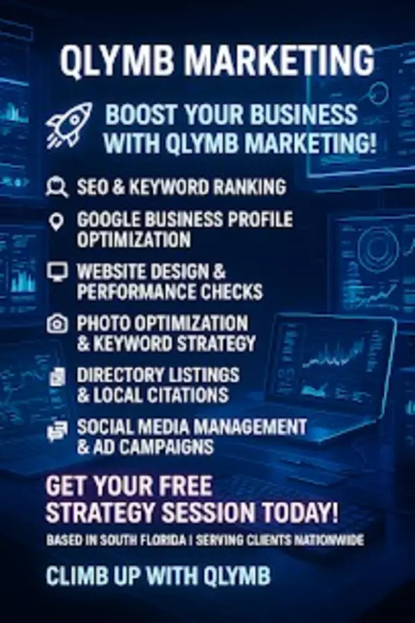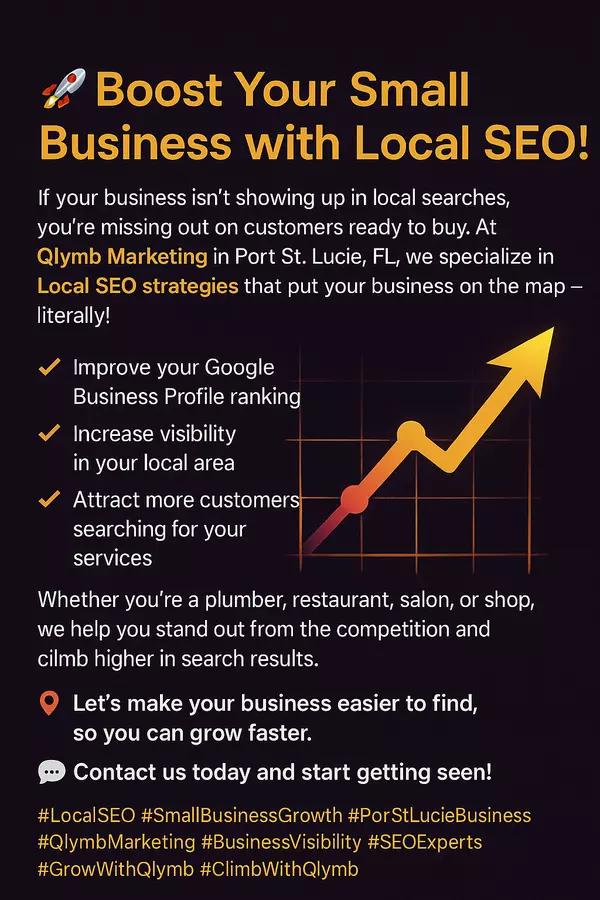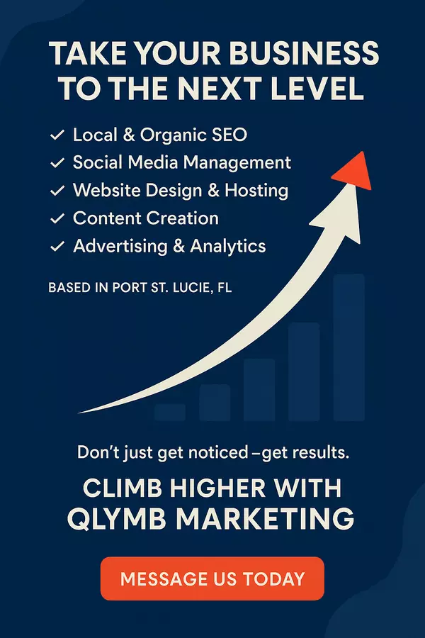 Qlymb Marketing helps businesses dominate local and organic search results. Based in Port St. Lucie, FL and serving clients nationwide, we specialize in business profile optimization, local SEO, review generation, website performance improvements, and keyword strategies that drive measurable growth. Whether launching a new business or expanding an established brand, we provide proven tools, data-driven strategies, and expert guidance to boost visibility, increase traffic, and attract more customers. Climb up with Qlymb.