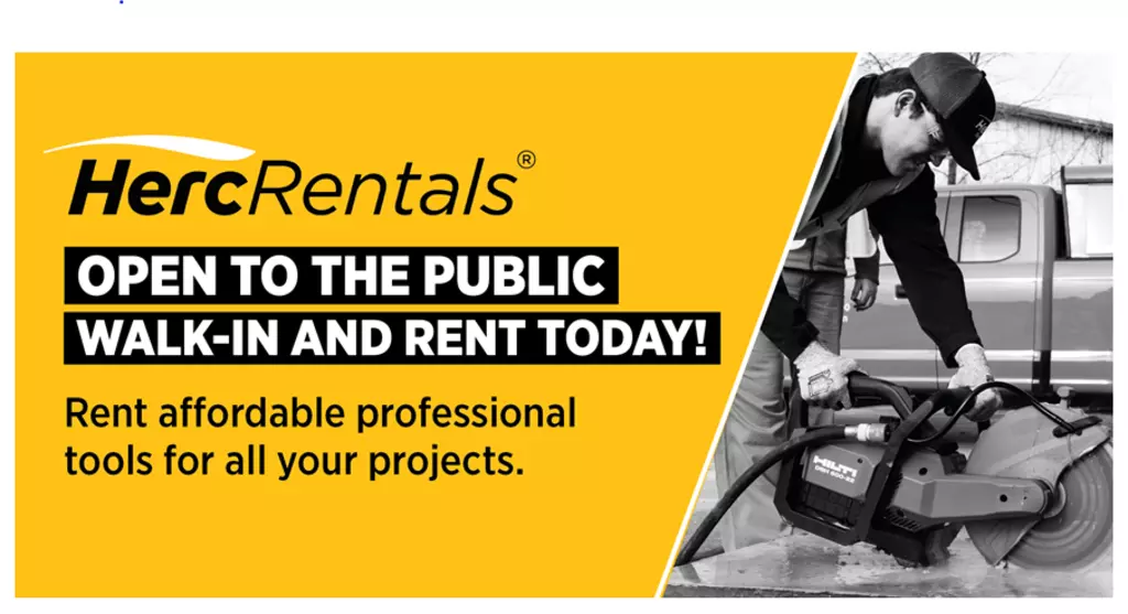 Equipment and Tools Rental from Herc Rentals. We offer Daily, Weekly, and Monthly rates for construction equipment from over 600+ rental locations near you. Our rental fleet encompasses equipment from the following categories: Aerial, Air Compressors & Tools, Climate Control, Compaction & Paving, Concrete & Masonry, Earthmoving, Floor Care & Surface Prep, Material Handling, Power Generation, ProContractor, Pump, Remediation & Restoration and Trucks & Trailers