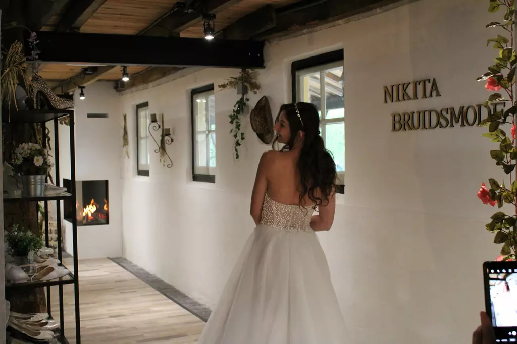 Nikita Bruidsmode Tweedehands & Exclusieve Trouwjurken in Velp (NB) Nikita Bruidsmode is een magische bruidswinkel waar sfeer, stijl en persoonlijke aandacht samenkomen. We bieden tweedehands én nieuwe trouwjurken in boho, prinsessen- en fantasy-stijl duurzaam, uniek en verrassend betaalbaar. Alles is op voorraad en jurken zijn al verkrijgbaar vanaf een paar honderd euro. Ook plussize maten beschikbaar. Bij ons mag je beleven: van passen op afspraak tot funpassen voor de lol en seizoensgebonden themabelevingen zoals IJs & Illusie of Schaduw & Sprookjes . Gevestigd in Velp bij Grave goed bereikbaar vanuit Nijmegen, Den Bosch en heel Noord-Brabant. Boek nu via WhatsApp, de website of AI-assistent Sophie. Tot ziens